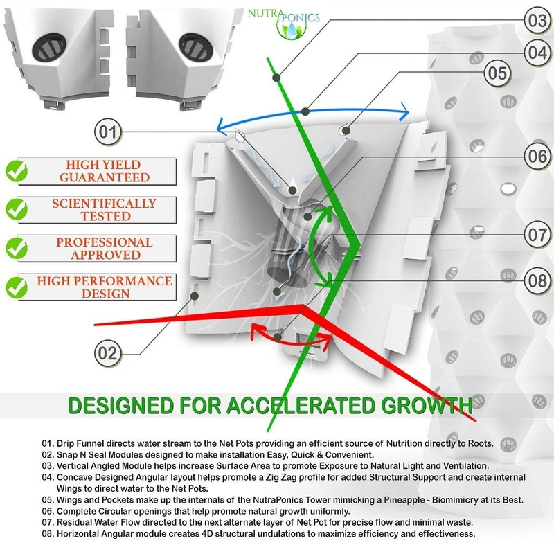 হাইড্রোপোনিক সিস্টেমের তুলনায়, এয়ারপোনিক গ্রো টাওয়ারের সুবিধা হল যে এটি উদ্ভিদের শিকড়কে আরও অক্সিজেন পেতে সহায়তা করতে পারে, কম জল এবং পুষ্টি ব্যবহার করতে পারে,এগুলি আপনাকে বর্জ্য জলের উত্পাদন হ্রাস করতেও সহায়তা করতে পারে, এবং আরো খরচ এবং প্রযুক্তিগত বিনিয়োগ সংরক্ষণ।