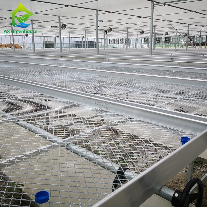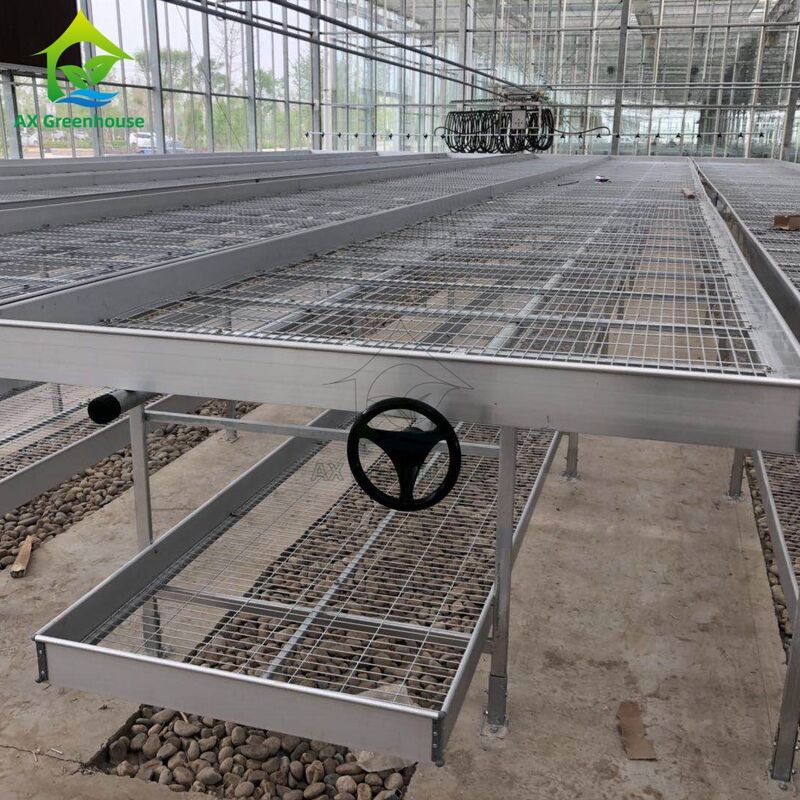 The movable rolling bench is designed for high-efficiency greenhouse cultivation. The main structure is built with hot-dip galvanized steel pipes, while the bench frame is made of high-strength aluminum alloy. The bench top uses expanded metal mesh with a hot-dip galvanized anti-corrosion finish, ensuring long-term durability and excellent resistance to rust and moisture.